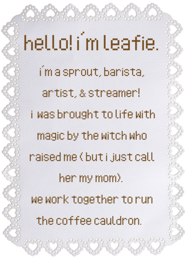 twitter.com/ohilin-logo by @almostthirteen twitter.com/almosthirteen-Harvest Moon Inspired Chibi by @Thaumana twitter.com/erlmaiden-Leafie Emotes & Digi gif by Teahaku deviantart.com/teahaku-stream assets set by etsy.com/shop/CozyCampground-alerts gif by etsy.com/shop/ArtDesignsBySilver-chikorita emote and bulb badges by etsy.com/shop/MarinaAcornz-bulbasaur emotes by etsy.com/shop/KODOKNGOREKArt-cafe items by etsy.com/shop/s8arsonist-cafe interation was made with psoymilk's mix it up tutorial youtube.com/watch?v=fY8Axx-oSqI